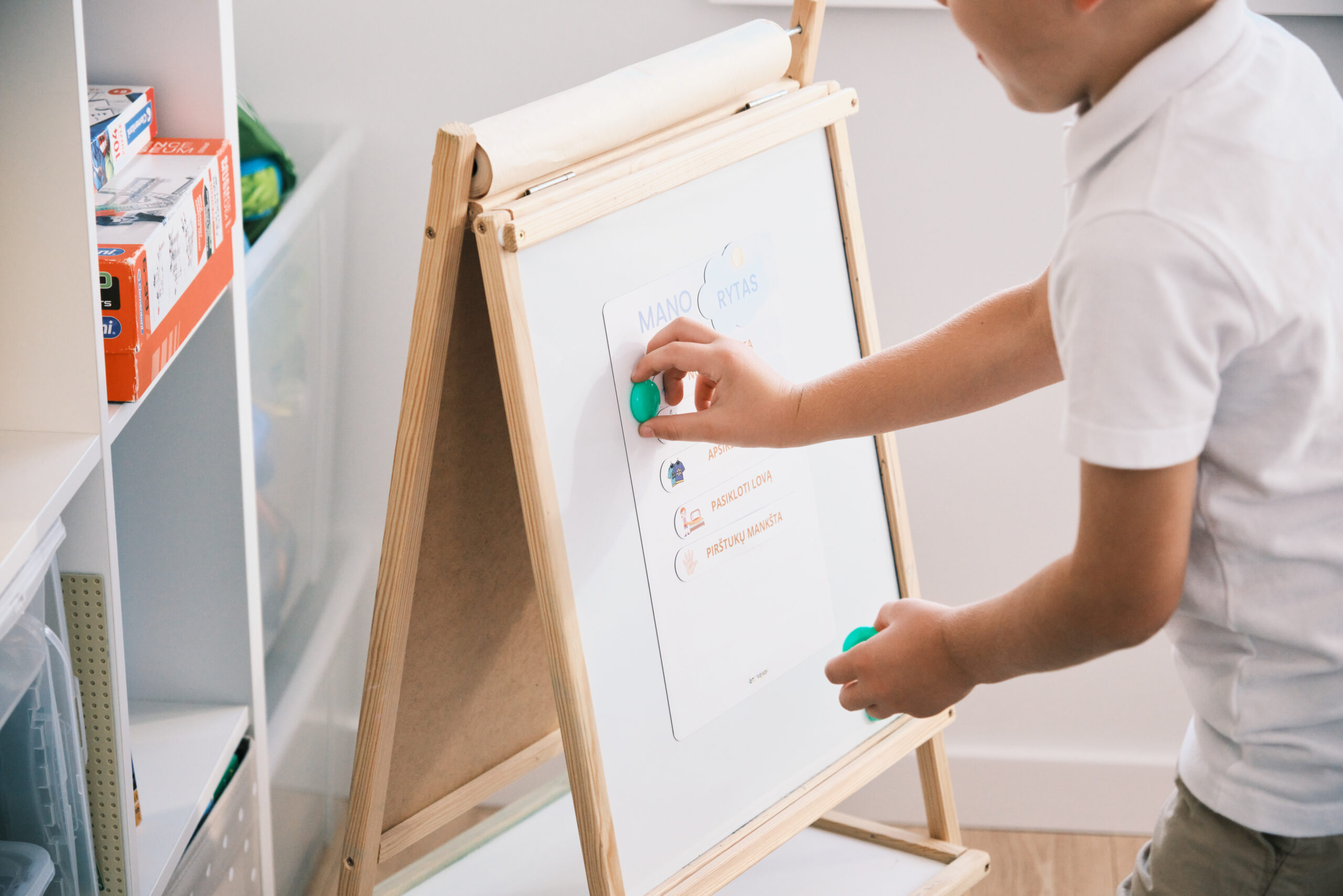 Interaktyvumas – veiklų įvairovė ir jų tvirtinimas dėliojant savo ryto ir vakaro veiklas, vaikus labai įtraukia ir skatina jų kūrybiškumą.